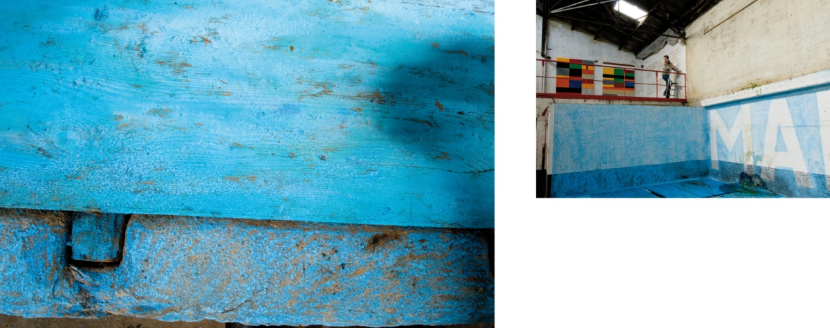 cette architecture industrielle et a sollicité des matériaux contextuels à l’activité portuaire : craie, bitume, bois, suie, eau…