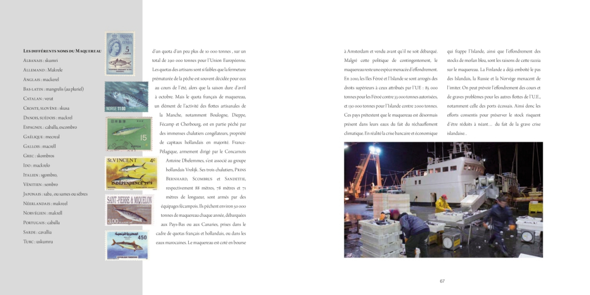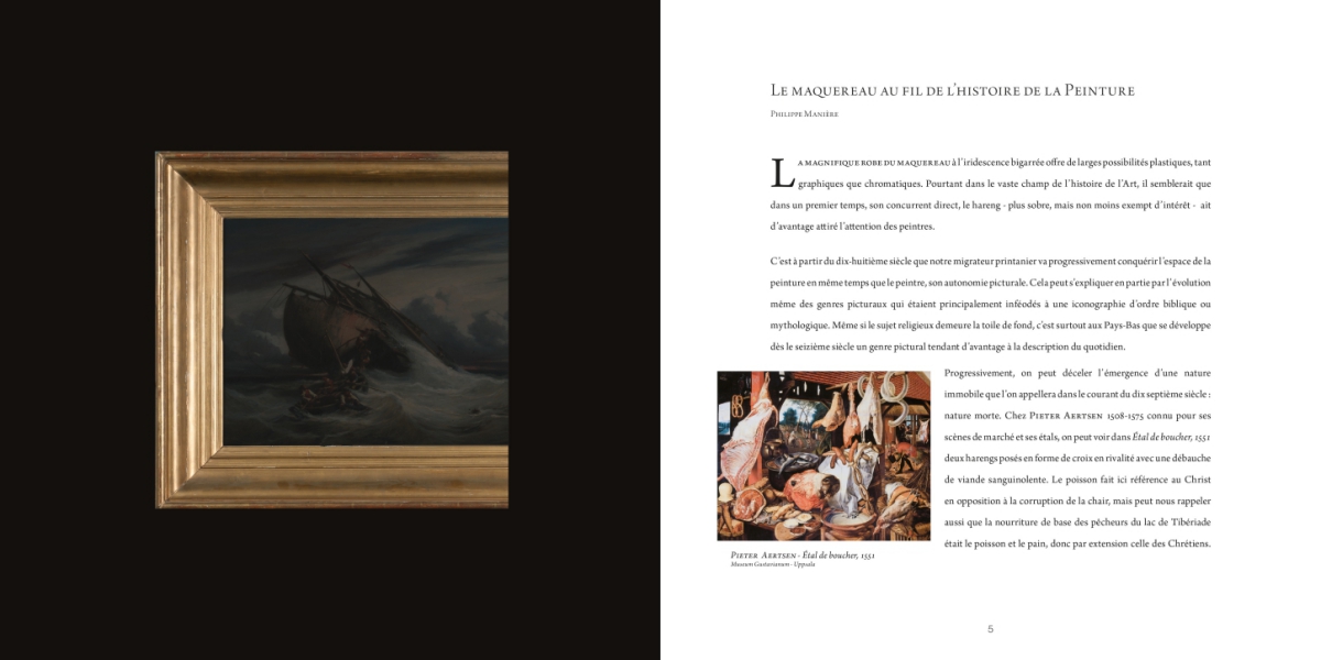 " Pour évoquer le maquereau, Xavier Nicostrate a sollicité Philippe Manière, historien d'art à l’école des Beaux-Arts, François Guennoc, auteur de plusieurs livres sur la pêche boulonnaise, Benoît Lobez, journaliste, et Tony Lestienne, le chef étoilé de la Matelote. Regards croisés sur un poisson qui ne fait pas parler de lui, malgré ses indéniables qualités nutritionnelles." Bertrand Spiers La Voix du Nord 25-09-2013