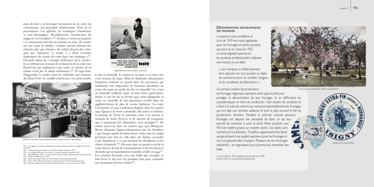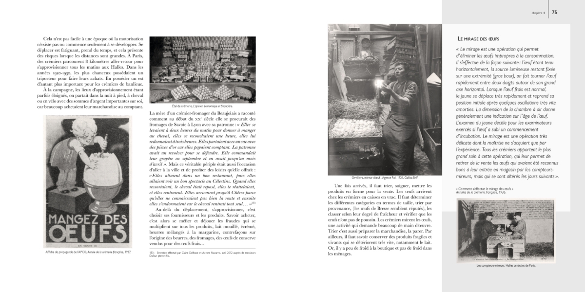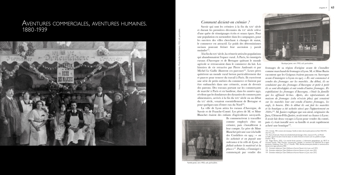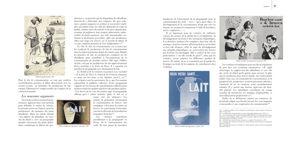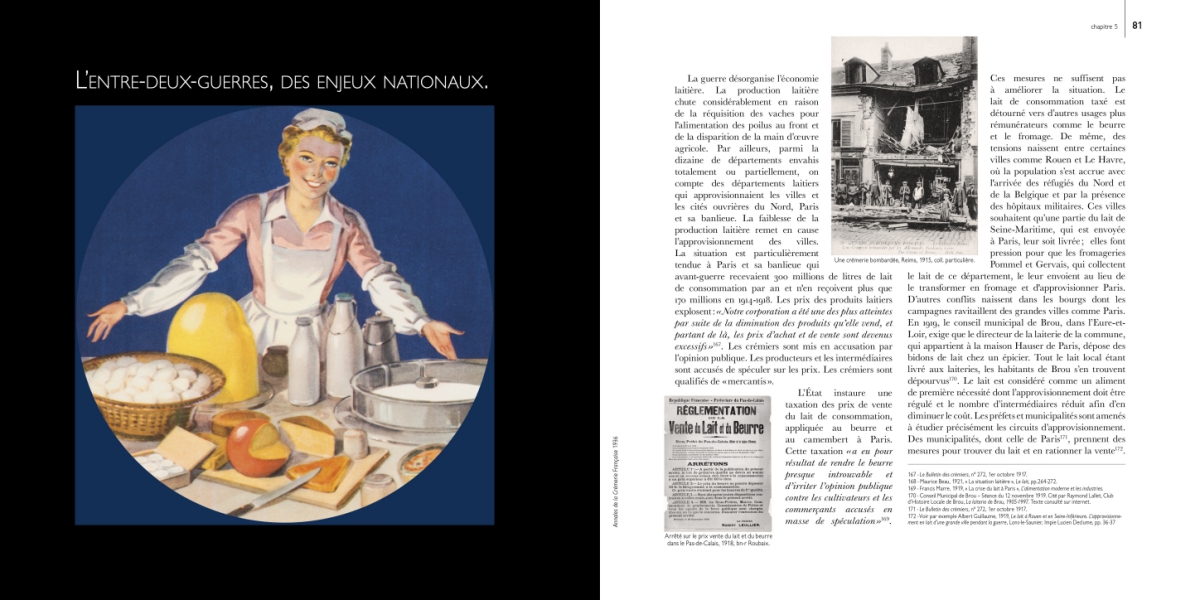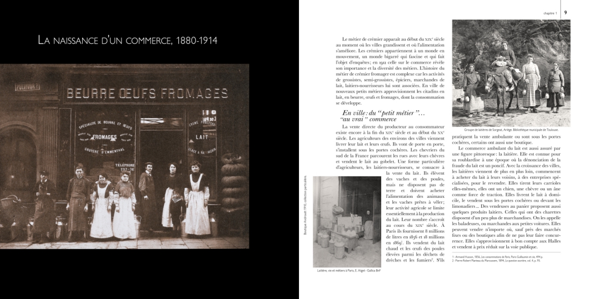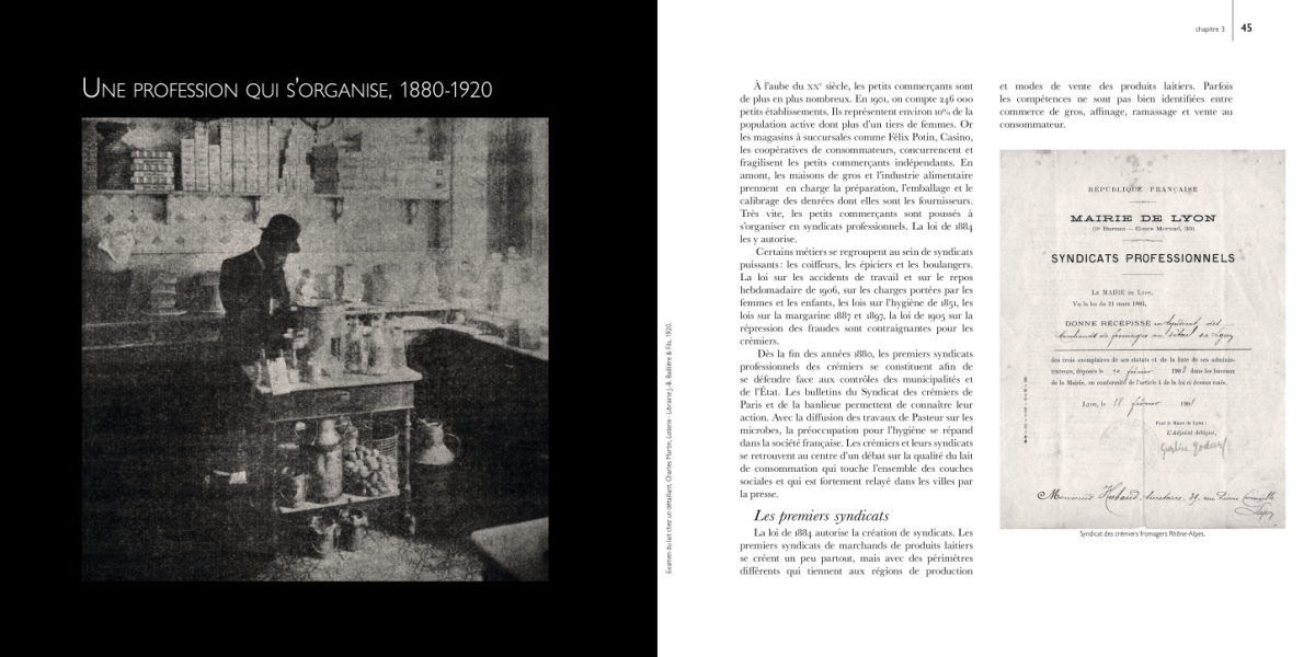l’histoire d’une profession et de ses syndicats. Il repose sur le dépouillement des archives et des publications du syndicat des crémiers parisiens depuis la fin du XIXème siècle et sur celui des archives du syndicat lyonnais. Une importante recherche bibliographique a permis de mettre en contexte ces histoires peu explorées jusqu’à présent.